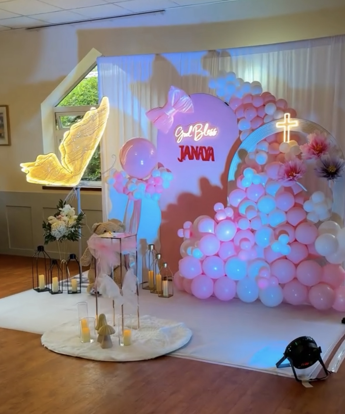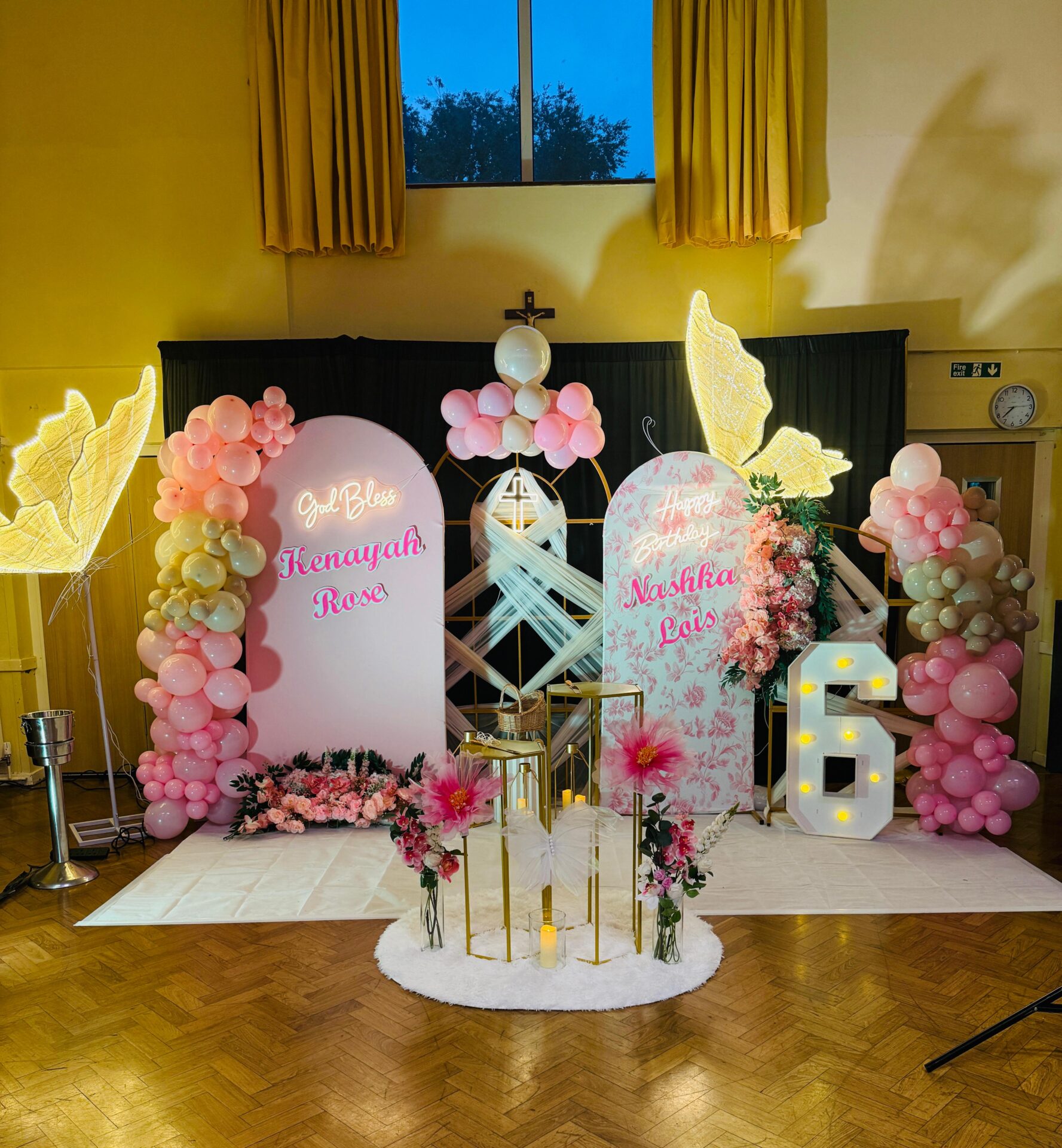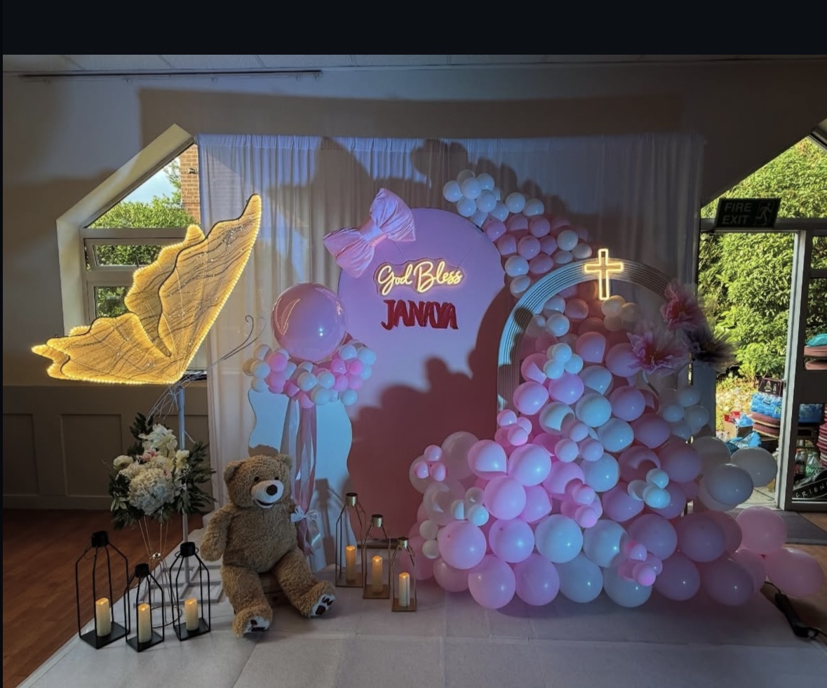 We specialise in beautiful, bespoke décor — thoughtfully designed and tailored to your vision. Whether it’s a wedding, baptism, birthday, or any special occasion, our team ensures every detail is perfectly crafted to reflect your style and make your event magical.